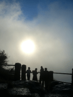 村に着き、ミサを行うにあたり注意をうける。何か(精霊など)が見えたとしても、怖がらないでくださいと。案内された広場の真ん中に大きな木(神木)が1本、布をかけて祭られている。ここで、まず鶏の血を木にかけ、しめ、その場で焼いてみんなで肉を食べる。骨を木の元に返す。ワインも木にあげてから、みんなでまわし飲む。村の人達によるミサが始まる。私達を森林に入れてくださいとお願いする。この儀式をしないと、森の中にたとえ入れたとしても、出てこれないそうだ。甲高いかけ声でしめ。