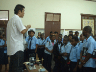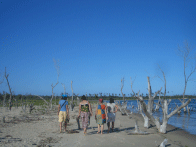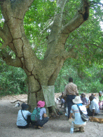 そして、いよいよ森の中へ。確かにガザ州はカシューナッツなど低い木が多いのだが、ここにはいろいろな種類の木がたくさんある。Oくんはメモをとりながら、種類や樹齢など木についていろいろ質問するが、残念ながらほとんどわからないという答えが返ってくる。