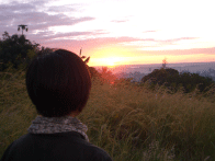 夕焼けを見に高台まで急ぐ。走ると体力がなくなっているのを実感。でも、急いで良かった。水色とオレンジのコントラストが何ともいえない。自然の空気を吸って、だいぶ元気になってきた。心も。