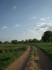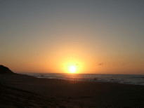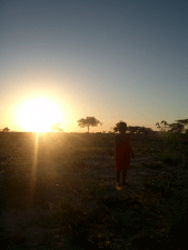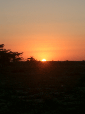 アフリカへ来て、初めて地平線に沈む夕日を見た時の写真('BOQUISSO'という村)。