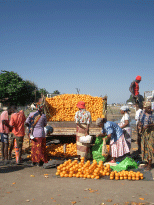 Chokwe、みかんをトラック山積みで売りにくる。おばちゃん達はそれを買って道端で売る。 2004-11-23 18:53 update