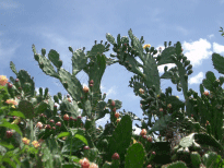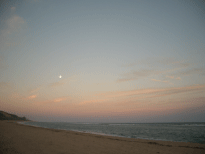 Xai-Xaiの風景。サボテン。海。空。 Chongoeneビーチの夕焼け。満月に近い月がでてる。